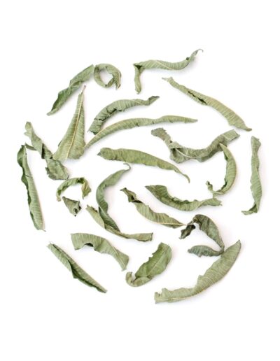 Bright green whole leaves of organic lemon verbena make a refreshing, detoxing or an ideal after-dinner digestive tisane.